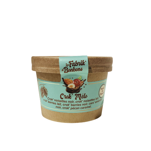 Plongez dans un tourbillon de saveurs avec Crok’ Mélo, le mélange gourmand signé « La Fabrik à Bonbons ». Ce délicieux assortiment réunit plusieurs bouchées enrobées de chocolat noir ou chocolat au lait qui raviront tous les amateurs de confiseries raffinées. Noisettes, berries, amandes caramel et noix de pécan se marient dans une palette de textures craquantes et fondantes.