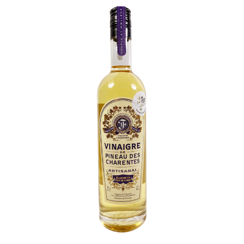 Vinaigre de pineau artisanal, élaboré en fûts de chêne, vieilli 4 ans, sans additif ni conservateur. Ce n’est pas un vinaigre au pineau mais un vinaigre de pineau!
