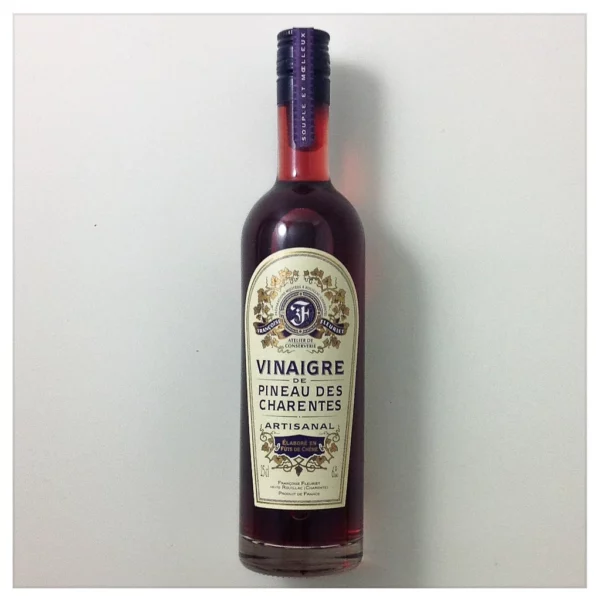 Vinaigre de pineau artisanal, élaboré en fûts de chêne, vieilli 4 ans, sans additif ni conservateur. Ce n’est pas un vinaigre au pineau mais un vinaigre de pineau!